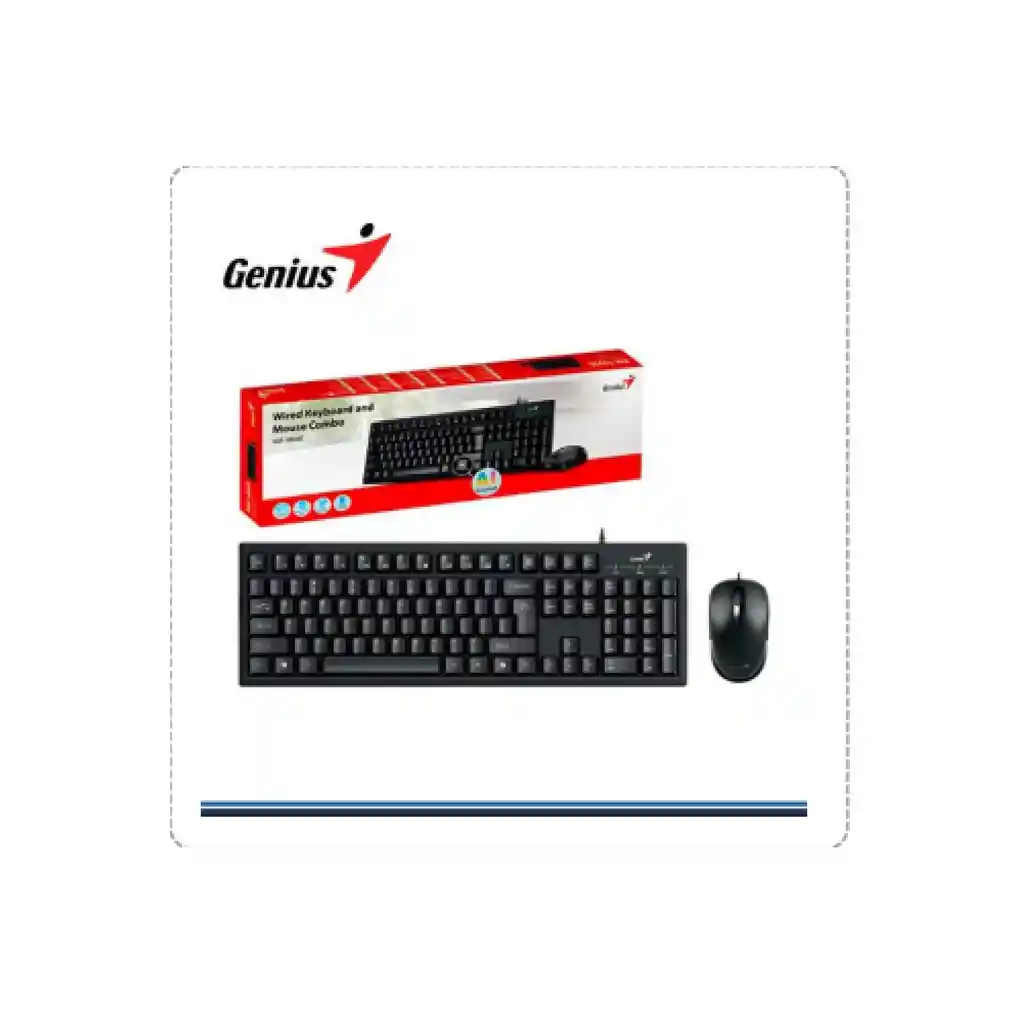 Combo de teclado y ratón con cable • Tecla AI Copilot para activar el asistente Copilot (para Windows 11 o superior) • 12 teclas de función multimedia y una tecla de calculadora • Diseño resistente a derrames que protege el teclado contra líquidos accidentales • Ratón óptico de 1200 dpi • Fácil de usar y cómodo • Interfaz USB, conectar y usar