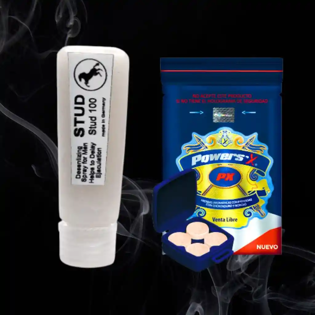 Este combo para hombres incluye 2 productos que te permitiran mejorar en la intimidad. -Retardante Liquido en Crema, ideal para retardar la eyaculacion precoz, permitiendo prolongal por mas tiempo la relacion sexual. Crema de 8g, empaque pequeño y discreto. -PowerS'X un potencializador sexual 100% natural diseñado para que mejores tu rendimiento sexual sin causar efectos secundarios ni dependencia.