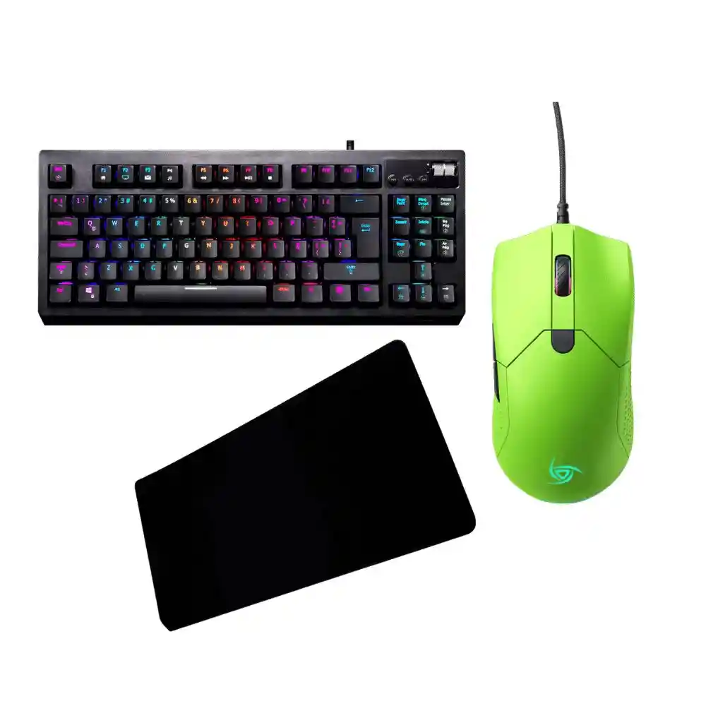 1. CONTROL TOTAL CON QUASAR El teclado mecánico Quasar te da el poder absoluto con su construcción resistente, switches intercambiables y retroiluminación vibrante. Incluye herramientas y accesorios para personalizar cada detalle y maximizar tu rendimiento en cada partida. 2. MÁXIMA PRECISIÓN CON AURORA Gracias a su sensor PMW 3330 con hasta 14,400 DPI escalados y switches Omron de 20 millones de clics, el mouse Aurora ofrece una respuesta instantánea y una precisión quirúrgica para cada movimiento. Su diseño simétrico y liviano de 72 g garantiza comodidad en cualquier tipo de agarre. 3. DISEÑO ERGONÓMICO Y DURADERO El cable trenzado de 1.8 metros del teclado y del mouse, junto con materiales de alta calidad y conectores reforzados, aseguran una resistencia extrema. Construido para durar, este combo está listo para cualquier desafío. 4. ILUMINACIÓN RGB PERSONALIZABLE Tanto el teclado como el mouse cuentan con efectos de iluminación RGB que puedes ajustar a tu gusto con el software LIGHTSTAR. Dale un estilo único a tu setup y sumérgete en una experiencia visual impresionante. 5. PRECISIÓN Y ESTILO CON EL PAD GT700 El pad gamer GT700 de 300 x 700 mm ofrece una superficie antideslizante para un control preciso del mouse. Su diseño exclusivo, bordes reforzados y resistencia a salpicaduras lo convierten en el complemento ideal para sesiones intensas de juego.