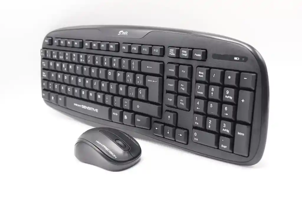 Combo Classic Inalámbrico J&R.Diseño Exclusivo.Ergonómico.Teclado de Acceso directo.104 teclas.sensor Optico.Distancia 6 - 10M.Teclas High Sensitive.High Precision 1.200 dpi.2.4 GHZ.El Combo Incluye Teclado - Mouse - Adaptador Wireless. 10 Mts de alcance.*No incluye baterias.