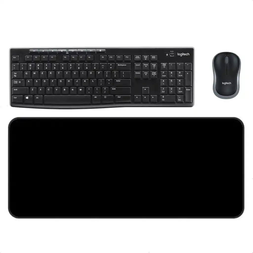 COMBO INALÁMBRICO TECLADO MULTIMEDIA Y MOUSE, LOGITECH MK270 TECNOLOGÍA INALÁMBRICA DE GRAN ALCANCE Ofrece una conexión fiable y rápida hasta 10 metros, sin apenas retrasos ni interrupciones gracias a la conectividad inalámbrica avanzada de 2,4 GHz de Logitech.1 MOUSE DISEÑADO PARA LOS DESPLAZAMIENTOS Puedes llevarte este compacto mouse allá a donde vaya tu computadora. LARGA DURACIÓN DE LAS BATERÍAS Funciona durante meses sin cambiar las baterías. Un conmutador de encendido/apagado ahorra batería. TECNOLOGÍA INALÁMBRICA AVANZADA DE 2,4 GHZ Trabaja o juega en más lugares. La conexión inalámbrica elimina virtualmente todos los retrasos, interrupciones e interferencias y proporciona un alcance de 10 metros.1 MOUSE COMPACTO Llévate el mouse a donde sea. Este cómodo mouse cabe fácilmente en las fundas y bolsas de computadora para viajar allá a donde vayas. DURACIÓN DE BATERÍAS PROLONGADA Las baterías del teclado ofrecen una duración de 36 meses y las del mouse 12, y mientras tanto vive sin preocupaciones de cambios de baterías.2 OCHO BOTONES DE ACCESO RÁPIDO Acceso instantáneo a los controles de reproducción: películas, música, Internet, correo electrónico, funciones de reproducción/pausa, volumen y mucho más. Todo con un solo toque. TAMAÑO NORMAL El teclado de tamaño normal con teclado numérico, teclas de dirección y nueve teclas F es cómodo, práctico y robusto. REQUISITOS DEL SISTEMA • PC con Windows • Windows Vista®, Windows® XP, Windows 7, Windows 8, Windows 10 • puerto USB • Chrome OS™ ESTA CAJA CONTIENE Teclado EN ESPAÑOL (incluye la tecla ñ) Mouse Nano receptor Dos baterías AAA (teclado) y una batería AA (mouse) Documentación del usuario + PAD MOUSE EXTRA LARGO XXL ANTIDESLIZANTE 800mm x 300mm TAMAÑO EXTENDIDO: 80 x 30 cm. Pad mouse diseñado para videojuegos tamaño grande, 3 mm de grosor, te ayuda a obtener una mejor experiencia operativa en juegos, mejora los movimientos del ratón y la precisión del sensor. MARCO COSIDO ANTI-DESHILACHADO de alta calidad: El borde de la alfombrilla de ratón garantiza que no se deshilache ni se descompone o no se agrieta como otras alfombrillas de ratón. SUPERFICIE LISA: Sin saltos, garantiza un movimiento y rápido mientras mantiene la velocidad y el control durante el juego, mejora el seguimiento de los movimientos del ratón, ideal para mesas grandes. BASE DE GOMA ANTIDESLIZANTE: la parte inferior de la alfombrilla cuenta con una base antideslizante por lo que se mantiene firmemente en su lugar evitando roces con la superficie apoyada. ESPECIFICACIONES • Dimensiones(mm): 800 x 300 x 3 • Materiales: Poliéster / Nylon / Caucho • Color: Negro • Peso: 280 gr