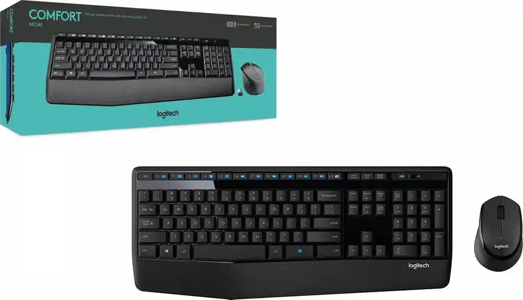 La combinación inalámbrica de teclado y mouse Logitech ofrece confort mejorado y baterías de larga duración. El teclado de tamaño normal proporciona una escritura silenciosa y cómoda, con reposamanos incluido y teclas multimedia de fácil acceso. El mouse contorneado para la mano derecha garantiza confort prolongado, con control preciso del cursor. Trabaja inalámbricamente hasta a 10 metros de distancia con una conexión confiable de receptor USB de 2,4 GHz.