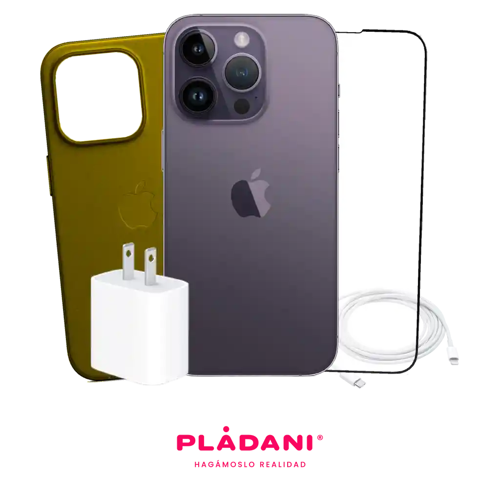 Este combo incluye: x1 - iPhone 14 Pro max usado x1 - Case x1 - Vidrio templado x1 Adaptador de carga X1 Protector de cargador