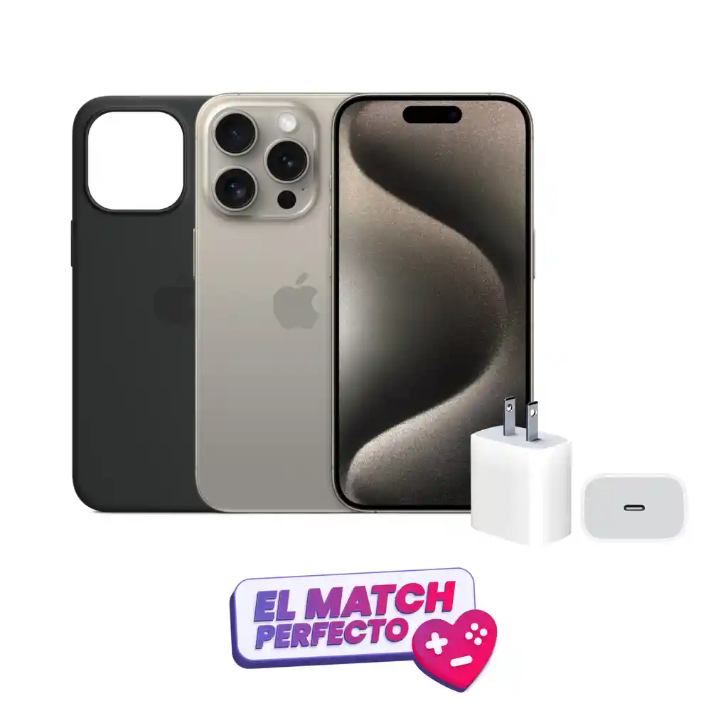 Mira qué bueno. El chip A17 Pro llegó a revolucionarlo todo. Titanio. Tan resistente y liviano. Tan Pro. El iPhone 15 Pro Max tiene el zoom óptico de mayor alcance en un iPhone. De lejos. Nuevo Botón de Acción. Elige su misión. Mira qué lindo. Míralo a fondo. iPhone. Forjado en titanio. El iPhone 15 Pro es el primer iPhone diseñado con titanio de calidad aeroespacial, la misma aleación que se usa en las naves espaciales enviadas a Marte. El titanio es uno de los metales con mejor relación dureza/peso, por lo que este es el iPhone Pro más ligero que hemos diseñado hasta ahora. Sentirás la diferencia en cuanto lo saques de la caja. Chip A17 Pro. La bestia del gaming. La mayor innovación en la historia de las GPU de Apple ya está aquí. El chip A17 Pro cambia la reglas del juego y dispara el rendimiento gráfico a niveles nunca vistos en un iPhone. Una victoria épica. Prepárate para sumergirte a fondo en la acción con escenarios llenos de detalles y personajes mucho más realistas. Y como el chip A17 Pro te da una velocidad y eficiencia líderes en la industria, todo va más rápido que un rayo. Nueva GPU nivel pro con 6 núcleos Una cámara que desafía tu imaginación. No vas a creer todo el potencial que esconde el sistema de cámaras más potente en un iPhone. Desde las asombrosas posibilidades de encuadre hasta los retratos de última generación. Prepárate para crear lo inimaginable. El iPhone 15 Pro te permite elegir entre varias distancias focales. Es como llevar siete lentes profesionales en el bolsillo adondequiera que te lleve la inspiración. La cámara gran angular de 48 MP es más avanzada que nunca, y toma fotos en superalta resolución con un increíble nivel de detalle y color. La diferencia saltará a la vista en tus retratos. Y eso no es todo: ahora ya no necesitas cambiar al modo Retrato. Si tu protagonista es una persona, un perro o un gato, el iPhone captura la información de profundidad de forma automática. Así, podrás convertir tu foto en un retrato al instante, con un hermoso efecto difuminado. O hacerlo más tarde en la app Fotos. 120 mm de zoom. Pro nivel Max. El iPhone 15 Pro Max suma un nuevo lente a sus filas. La cámara teleobjetivo de 5x tiene el zoom óptico de mayor alcance que haya tenido un iPhone y se integra a la perfección en el compacto sistema de cámaras Pro. Ahora puedes hacer primeros planos supernítidos de un familiar, de tu mascota o de quien quieras desde más lejos. La distancia ya no es una excusa. Zoom óptico de 5x con lente de 120 mm. Un toque de acción. El nuevo Botón de Acción no se anda con rodeos y te lleva directo a tu funcionalidad favorita. Configúralo con la que quieras usar y mantenlo presionado para que haga su magia. El Botón de Acción ya viene configurado para activar o desactivar el modo Silencio, pero si quieres usarlo para otra cosa, puedes silenciar el teléfono desde el Centro de Control o hacerlo de forma automática con los filtros de Enfoque. Sin importar la hora y el lugar, el Botón de Acción está siempre en guardia. Úsalo para abrir la cámara y tomarte una selfie. O para grabar una nota de voz sobre la marcha. Incluso puedes configurar atajos para abrir una app o hacer varias tareas al mismo tiempo, como prender las luces de la sala o poner música. Los gigas pasan volando. El iPhone 15 Pro es el primer iPhone con USB 3.5 Esto se traduce en un gran salto de velocidad en las transferencias de datos y en flujos de trabajo profesionales más rápidos que nunca. Las buenas noticias vuelan. El nuevo conector USB‑C te simplifica la vida. Carga tu Mac o iPad con el mismo cable que usas para el iPhone 15 Pro. Despídete de ese atado de cables. Transferencias de archivos hasta 20 veces más rápidas Una batería que carga con todo. El iPhone 15 Pro viene equipadísimo con funcionalidades avanzadas. Y aun así tiene una batería capaz de seguirte el ritmo todo el día. Si tú aguantas, él aguanta. Hasta 29 horas de reproducción de video en el iPhone 15 Pro Max Hasta 23 horas de reproducción de video en el iPhone 15 Pro Y disfruta una carga inalámbrica más rápida y eficiente con un cargador MagSafe. En una emergencia, puedes contar con tu iPhone. El iPhone tiene Detección de Choques, una funcionalidad de seguridad que ayuda a salvar vidas. Pantalla Super Retina XDR Pantalla OLED de 6,7 pulgadas (diagonal) sin marco Resolución de 2796 x 1290 pixeles a 460 ppi La pantalla del iPhone 15 Pro Max tiene esquinas redondeadas que siguen el elegante diseño curvo del teléfono, y las esquinas se encuentran dentro de un rectángulo estándar. Si se mide en forma de rectángulo estándar, la pantalla tiene 6,69 pulgadas en diagonal (el área real de visualización es menor).