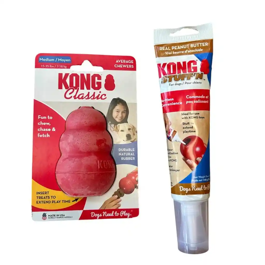 Este combo interactivo de KONG+MANTEQUILLA DE MANÍ, ayuda a mantener ocupado a tu peludo, estimular su mente y hacerlo feliz.