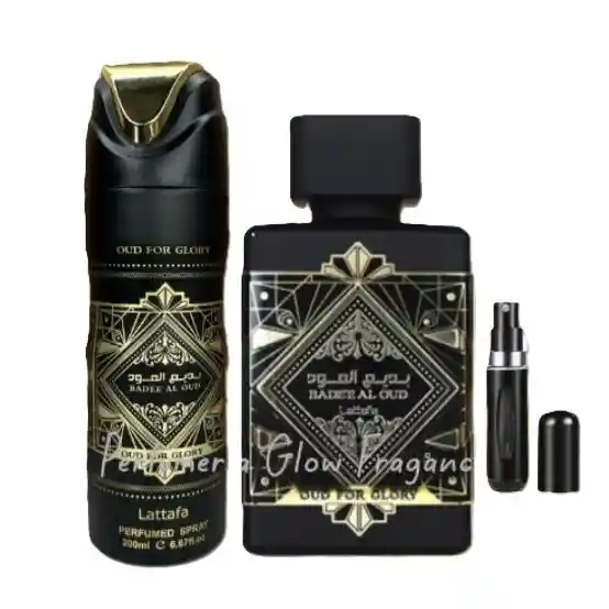 Descubre la exclusividad y sofisticación de Lattafa Oud For Glory, un set premium diseñado para quienes buscan calidad y distinción en cada detalle. Este estuche incluye la fragancia Lattafa Oud For Glory, conocida por su aroma amaderado y oriental, acompañado de un práctico spray y un perfumero recargable para disfrutar de tu esencia favorita en cualquier lugar. Características del Combo: Fragancia Lattafa Oud For Glory: Una combinación única de notas de azafrán, nuez moscada, lavanda, madera de oud, pachulí y almizcle, que ofrecen una experiencia olfativa intensa y envolvente. Spray y Perfumero Recargable: Accesorios ideales para mantener tu fragancia siempre a la mano.