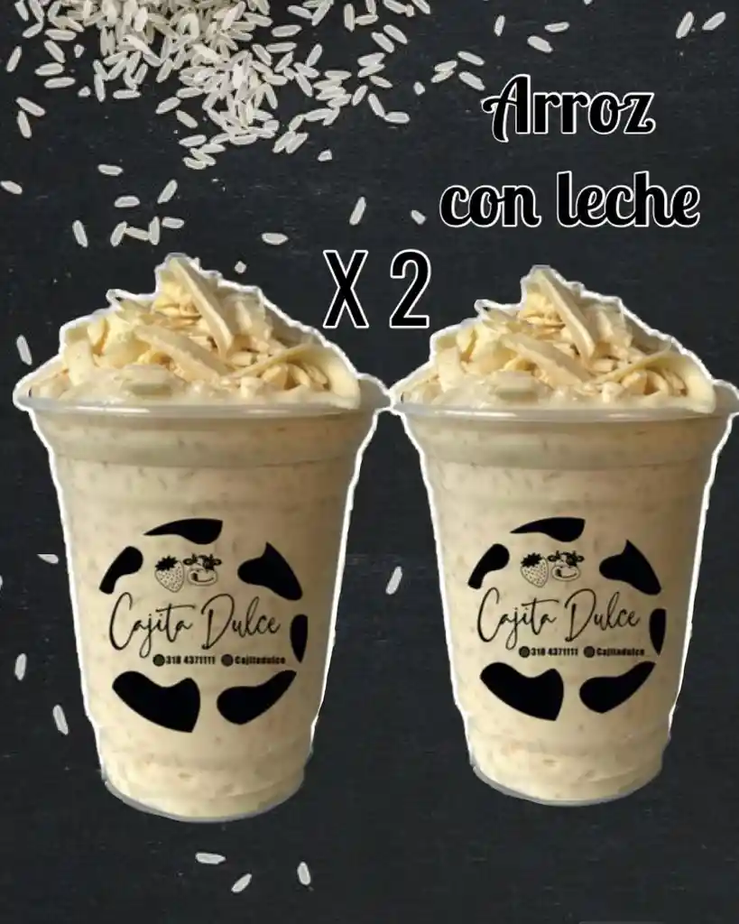 Dos vasos de arroz con leche lechudito por 400 gr C/U con queso. Producto refrigerado, empacado en vaso amigable con el medio ambiente