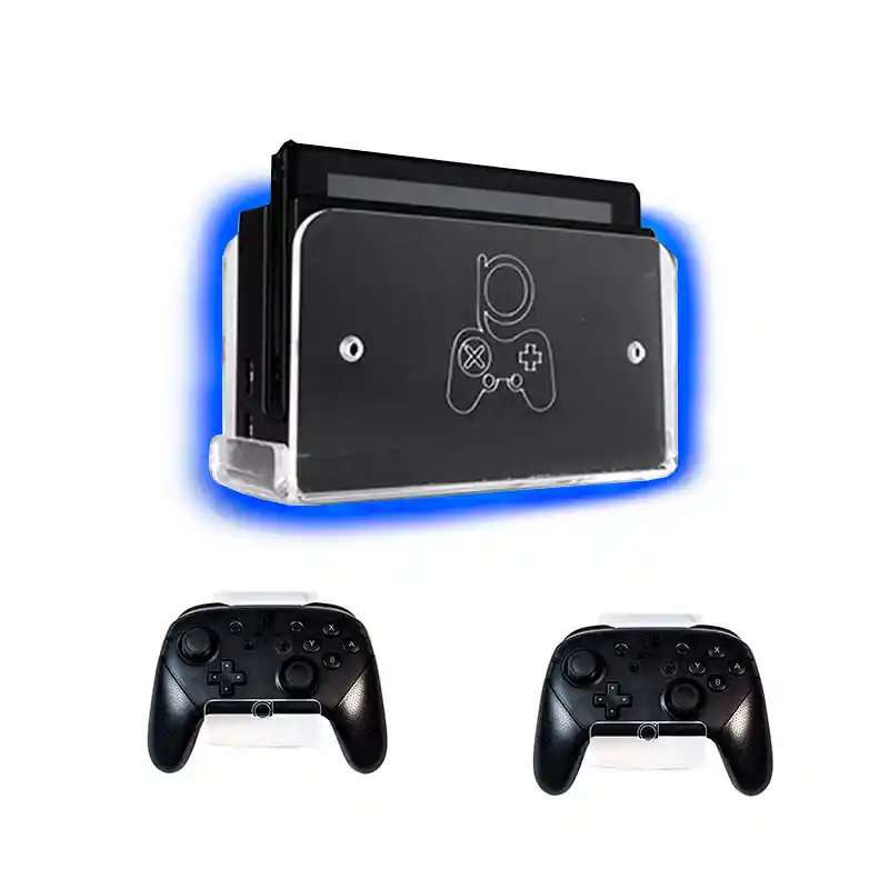 "Disfruta de nuestro increíble Combo Soporte Nintendo Switch + Luz Led Multicolor para tu consola de videojuegos y optimiza tus espacios con HangerTech. Incluye: Soporte de pared para consola Nintendo Switch 2 Soportes universales para Controles. 1 Tira Luz Led Multicolor de 1 metro de longitud, con personalización mediante App."