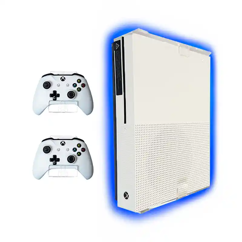 "Disfruta de nuestro increíble Combo Soporte Xbox One S + Luz Led Multicolor para tu consola de videojuegos y optimiza tus espacios con HangerTech. Incluye: Soporte de pared para consola Xbox One S 2 Soportes universales para Controles. 1 Tira Luz Led Multicolor de 1 metro de longitud, con personalización mediante App."
