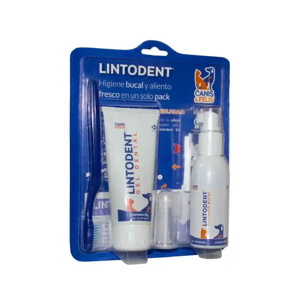 Gel dental Canis & Felis, está indicado para el mantenimiento de la higiene oral de perros y gatos. Tratamiento de úlceras aftosas, tratamiento de estomatitis, Infecciones orales y gingivitis ulcero necrotizante aguda, durante la fase higiénica del tratamiento periodontal, como coadyuvante al control mecánico de la placa. (50ML) Enjuague Bucal Lintodent contribuye al mantenimiento de la higiene oral de la mascota, reduce el mal aliento ocasionado por la actividad microbiana. Ayuda a controlar la placa bacteriana. Contiene aceite esencial de thymol, enzimas, glucosa oxidasa, lactato de zinc.(60ML)