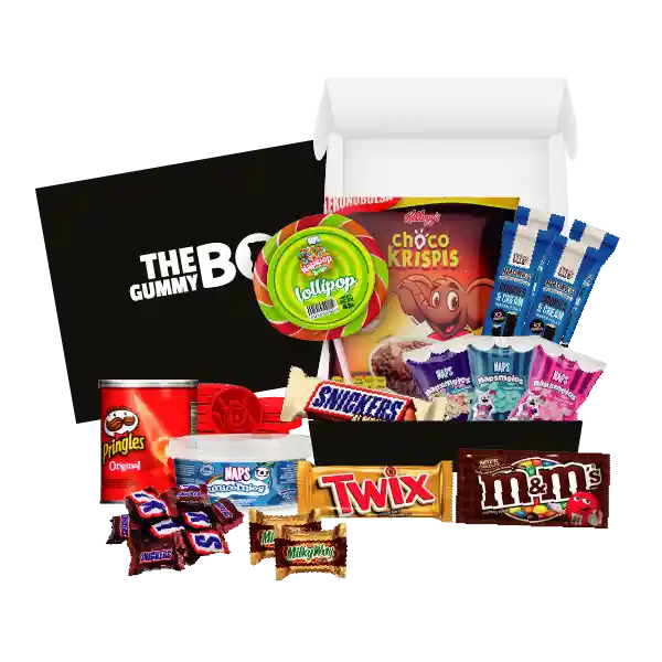 Contiene. Monedas de Chocolate Color Rojo Naps 10 Und + Napsmelos Fresa Naps Bolsa 3 x 20 g c/u + Napsmelos Vainilla Naps Bolsa 3 x 20 g c/u + Napsmelos Surtido (Vainilla. Fresa y Frambuesa) 3 Und + Naps Bolsa 3 x 20 g c/u + Tarro Gomas Naps Unicornio 200 g + Caja de Napolinos Barquillos Cookies & Cream Naps 56 g + Paquetes 2 x 14 g c/u + Chupeta Lollipop Naps 42 g + Snickers de Almendra 58 g + M&M Chocolate 4 x 13.2 g c/u + Twix 50.7 g c/u + Milky Way Miniature 12 x 8.6 g c/u + Snickers Miniature 12 x 9 g c/u + Choco Krispis Mega Bolsa 90 g + Papas Pringles Original 37 g