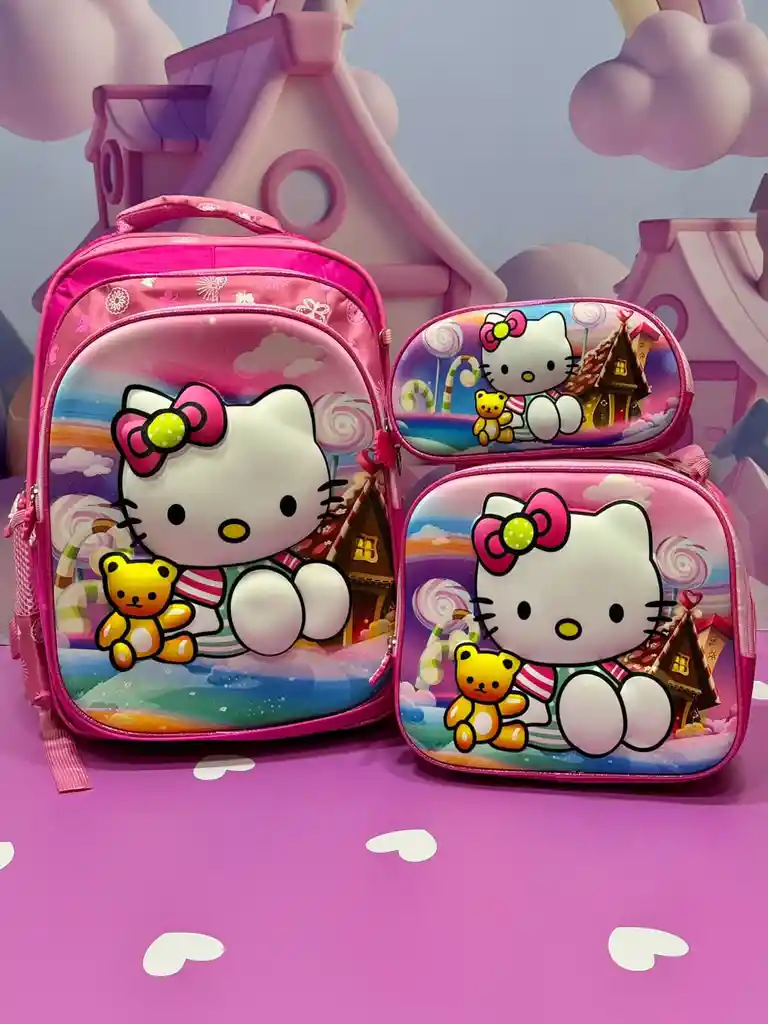 Este conjunto no solo incluye una mochila moderna, una lonchera con mucho estilo y una lapicera única, ¡sino que también lleva la actitud rebelde y la personalidad audaz de Kuromi a cada parte del día de tu pequeño! Detalles del Producto: Maleta Escolar Mochila Diseñada meticulosamente con materiales de primera calidad y adornada con la traviesa y adorable Kuromi, esta mochila es más que un accesorio: es una declaración de estilo y personalidad. Sus compartimentos espaciosos y sus correas ajustables garantizan comodidad y practicidad, mientras que su diseño moderno y rebelde asegura que tu hijo destaque en cualquier lugar al que vaya. Lonchera con Estilo: ¿Quién dijo que la hora del almuerzo tenía que ser aburrida? Con nuestra lonchera de Kuromi, cada comida se convierte en una oportunidad para expresar estilo y actitud. Su diseño moderno y rebelde no solo llama la atención, sino que también mantiene los alimentos frescos y seguros, garantizando que tu pequeño esté alimentado y lleno de energía para todas sus aventuras. cosmetiquera . Desde la escuela hasta el tiempo de juego en casa, es el compañero perfecto para cualquier actividad , dibujar y colorear sean experiencias emocionantes y llenas de personalidad, mientras que su funcionalidad garantiza que tu pequeño esté siempre listo para dejar volar su imaginación. Gran variedad de diseños tamaño maleta 42 x30x20 cm lonchera 25x25x8.5 cm cosmetiquera 23x11x5cm
