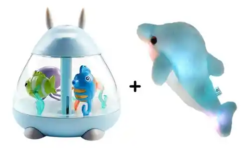 America Store te trae Combo de Mini Difusor + Almohada Luminosa CARACTERÍSTICAS MINI DIFUSOR : Marca: XYWIN Modo de fuente de alimentación: USB Color: azul, rosa Modelo: 1003 Apariencia: Animal Potencia nominal: 1,2 Función: aromaterapia Número de salidas de niebla: 1 Objeto aplicable: hogar Capacidad del tanque de agua: 350ml CARACTERÍSTICAS ALMOHADA DELFIN: Almohada de delfín LED de 12 pulgadas con suave felpa exterior y 100% algodón PP de alta calidad en el interior. Puedes sentir la suavidad. Exquisita mano de obra que da vida al animal de peluche. La cremallera cierra el bolsillo de la batería, por lo que no hay riesgo de tragar. Fácil y divertido tiempo de cama: las luces LED tienen 7 colores. Por la noche, el delfín brillante se ve muy hermoso. Con luces cálidas y suaves, los niños pueden dormir bien cada noche.
