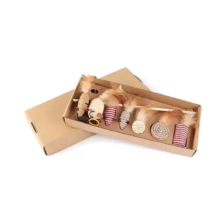 Genial caja de juguetes para gato incluye Caña con diferentes accesorios que garantizan el entretenimiento de tu felino