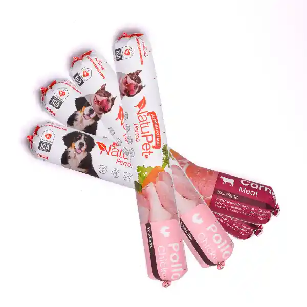 Combo de 10 natubarras combinadas (5 de pollo y 5 de carne). Natubarras de Pollo Crudo y natural a base de pollo REAL, frutas y verduras frescas y huevo; no contiene conservantes ni adiciones.