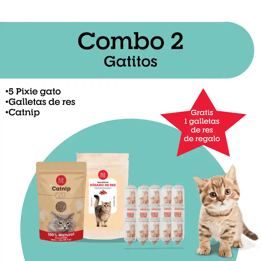 Delicioso combo navideño para premiar a tu gatito con el mejor alimento y snacks, incluye: 1 Galletas de res para gatos 1 Catnip 5 Pixie de pescado al horno Como regalo un paquete adicional de galletas de res