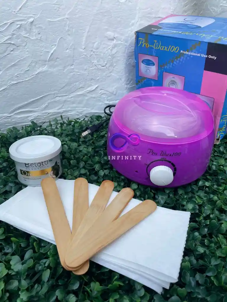 COMBO OLLA DE CERA PROWAXX Incluye: Olla de cera Cera depilatoria Lienzo (10) Aplicadores (5)