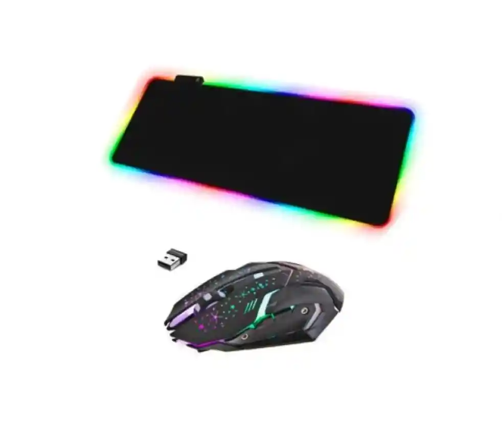Combo Pad Mouse Rgb XL + Mouse Wb 911 6 Botones Wireless Recargable 3200dpi. CARACTERISTICAS: Pad Mouse Gamer RGB Iluminación LED. * Puerto USB. * Botón: Cambio Modos de Luz * Tamaño XL. 80 x30 * Luz LED: 14 Modos con 7 colores. Mouse WB 911. * Nuevo diseño adaptado para un mayor confort. * Rueda Scroll para fácil navegación en internet y documentos * 6 botones * Óptico, sin bola. No necesita limpieza * Precisión óptica sobre múltiples superficies. * Conexión inalámbrica USB 2.4Ghz Iluminación LED retroiluminado * Batería recargable por cable USB. * Compatible con Windows 2000 / ME / NT / XP / Vista / Windows7 * Diseño de Juego Profesional. * Material: Microfibra/Goma. * Superficie Brillante.. * Antideslizante de Goma Gruesa con Agarre Excelente en Distintas Superficies. * Diseño Ergonómico, Acolchado, Cómodo. DESCRIPCION: Pad Mouse Gamer Rgb Alfombrilla Largo 80x30 XL. - Tamaño perfecto: El tamaño se ajusta perfectamente y proporciona un espacio de movimiento perfecto. - Diseñado por jugadores, ideal para jugar/trabajar en la oficina. - Base de goma antideslizante: La fibra brillante y la superficie de tela suave con base de goma antideslizante garantizan un control preciso del ratón y una estabilidad constante en su escritorio. - Superficie Ultra suave: diseñada con material trenzado de fibra, con una superficie micro texturizada y Lisa, navegación precisa y optimiza tu experiencia de juego. - 14 modos de iluminación: Presione el botón entre 14 modos de iluminación con 7 colores: rojo, azul, verde, morado, cian, amarillo, blanco, onda alterna, onda sincronizada, Flash alterno y otros. Mouse Weibo Wb-911 Con 6 Botones Inalámbrico Recargable. - Mouse con tecnología avanzada y de mayor calidad para tu comodidad, este dispositivo te ayudara a evitar enredos de cable o que no alcanza, ya no te preocuparas más fusiona con conexión inalámbrica para tener libertad al manejarlo, viene con cable de carga para no consumir dinero en baterías. - Es un mouse Inalámbrico Intercambiable entre 1000/1600/2400/3200dpi. Incluye motor óptico de precisión que mejora la labilidad. Dispone de una configuración interna que equilibra los pesos para una mayor fluidez en el manejo del ratón, al estar conectado enciende su luz interna y cambia de color. - Esta especialmente diseñado para jugadores, ya que su relacion de peso y diseño son el mejor complemento para los juegos del pc. Con iluminación LED, diseño ergonómico Instalación automática (plug & play) Resolución dinámica de 3200 ppp Compatible con Windows 2000 / ME / NT / XP / Vista / Windows Recargable. ESPECIFICACIONES: Mouse WB911. * Marca: Weibo WB 911 * Color: Negro * Tamaño: 13 x 7.8 x4 cm. * Peso: aproximadamente 157g. * Longitud del Cable USB: unos 140 cm. * Resolución dinámica de 3200 ppp. Pad MouseXL RGB: * Material: superficie de tela micro texturizada, base de goma antideslizante y fibra. * Alimentación : 5v 120mA. * Dimensiones : 80 x 30 cm. * 1 Cable USB.