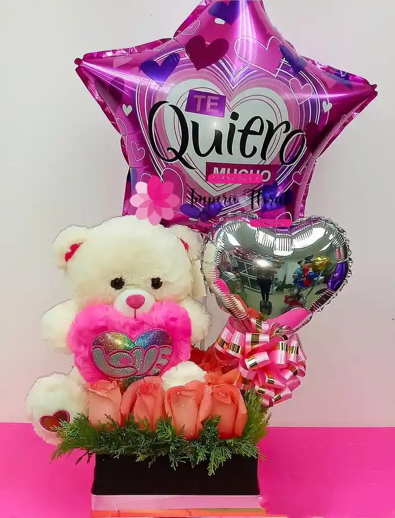 Combo para sorprender, x 5 rosas de exportación,2 globos de acuerdo al motivo y tarjeta mensaje