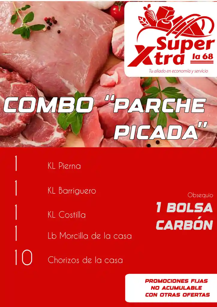 1 KILO DE PIERNA // 1 KILO BARRIGUERO // 1 KILO CONSTILLA // 1 LIBRA DE MORCILLA DE LA CASA // 10 CHORIZOS DE LA CASA. /// OBSEQUIO 1 BOLSA DE CARBÓN