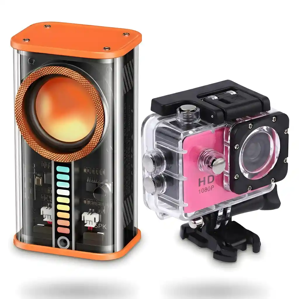 Combo Futuro y Acción: Altavoz Mecha + Cámara Deportiva 1080P Potencia tu espacio de trabajo y captura tus mejores aventuras con este exclusivo combo. Por un lado, el Altavoz Mecha redefine tu setup con su diseño vanguardista, conectividad Bluetooth 5.2 de alta estabilidad y una batería de larga duración. Por el otro, la Cámara Deportiva 1080P te permite registrar cada momento extremo, incluso bajo el agua, gracias a su carcasa sumergible. Es la combinación perfecta entre estética tecnológica para tu escritorio y funcionalidad resistente para tus viajes. Características del Altavoz Mecha Estilo Mecha Futurista: Diseño de alto impacto visual con acabados técnicos y vanguardistas. Bluetooth 5.2: Conexión ultra estable y antiinterferencias con alcance de hasta 15 metros. Gran Autonomía: Batería de 1000 mAh que ofrece hasta 12 horas de reproducción continua. Carga Rápida Tipo-C: Interfaz moderna para una alimentación de energía eficiente y veloz. Compatibilidad Total: Funciona perfectamente con PC, smartphones, tablets y reproductores MP3. Características de la Cámara Deportiva Grabación Full HD: Video nítido en 1080p a 30fps para capturar toda la acción. Sumergible a 30m: Carcasa impermeable con sellado hermético ideal para buceo o natación. Lente Gran Angular 120º: Captura una perspectiva más amplia de tus recorridos y paisajes. Pantalla LCD 2” HD: Visualiza tus fotos y videos al instante desde el monitor integrado. Ultra Ligera (46g): Diseño compacto fácil de montar en cascos, bicicletas o pecheras. Fotos de 12MP: Sensor optimizado para capturas fotográficas de alta resolución en formato JPEG. Especificaciones Técnicas Altavoz: Bluetooth 5.2 / Batería 1000 mAh / Puerto Tipo-C / 12h Autonomía. Cámara: Video 1080p / Foto 12MP / MicroSD hasta 32GB (No incl.) / Batería 30 min. Contenido del Paquete 1 x Altavoz Bluetooth Estilo Mecha. 1 x Cámara Deportiva 1080P. 1 x Carcasa Impermeable. Kit de accesorios intercambiables y cables de carga. Garantía del Combo Ambos productos cuentan con 30 días de garantía por defectos de fábrica. No cubre daños por mal uso, golpes o humedad en el altavoz. Política de Retracto Aplica por 5 días hábiles tras la entrega. Los productos deben devolverse limpios, sin señales de uso, con todos sus plásticos y accesorios originales. Notas Importantes Energía Cámara: La batería de la cámara dura 30 min aprox. se recomienda usar una Power Bank para grabaciones largas. Almacenamiento: La cámara requiere una tarjeta MicroSD (Clase 10 recomendada) no incluida. Evidencia: Para cualquier reclamación por daños físicos al recibir, es obligatorio grabar un video del desempaque (unboxing).
