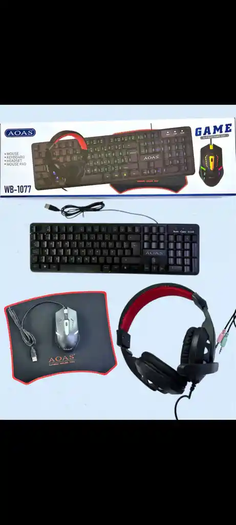 TECLADO + MOUSE + DIADEMA + PAD MOUSE PARA COMPUTADOR GAMER RGB ALÁMBRICO