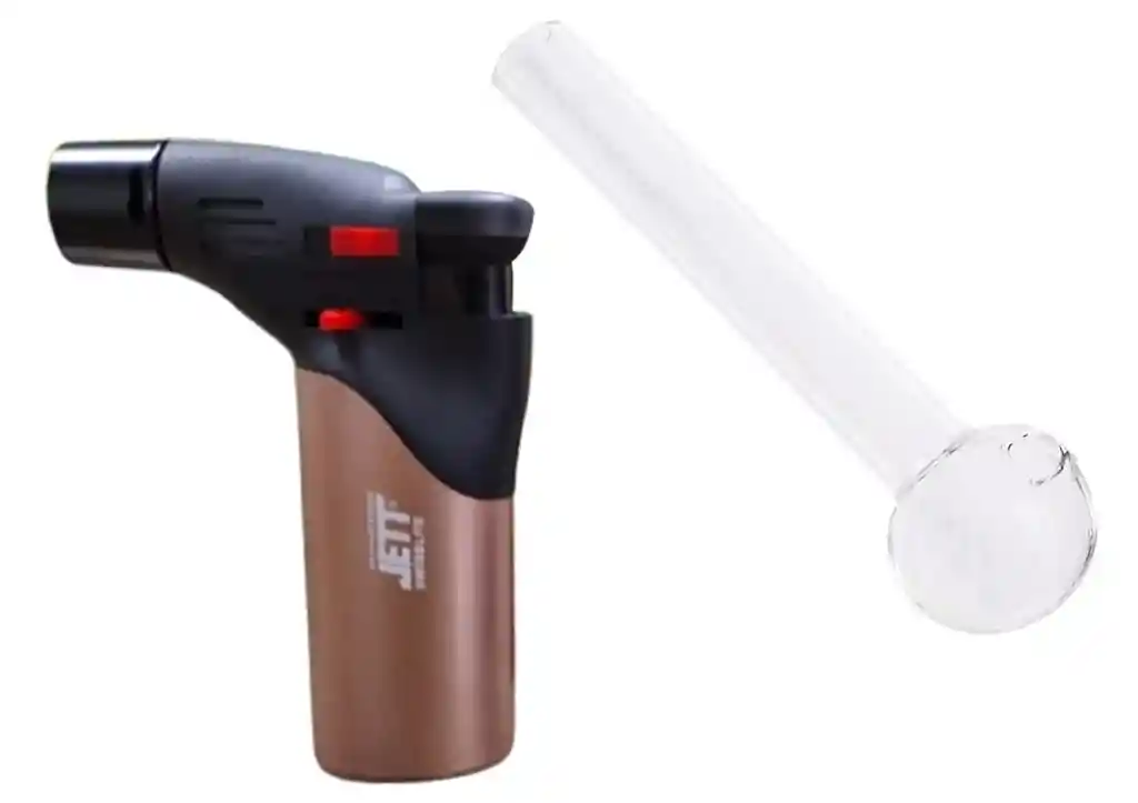 Combo sencillo para tus seciones, Soplete de gas butano recargable mas pipa de vidrio cabeza para wax