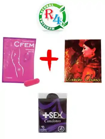 Disfruta de relaciones mas duraderas con este combo que reúne el tizón chino un potente retardante que ayuda a controlar la eyaculación precoz y la capsula C-fem que aumentará los deseos en tu pareja haciendo que disfrute más el acto, tambien encontraras un paquete de 3 condones para que tengas más seguridad.