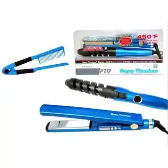Placas recubiertas de titanio.Pantalla Digital.Temperatura Maxima: 450°F.Alcanza altas temperaturas en pocos segundos.Perfecta para un rápido retoque o un peinado más elaborado.Incluye: Plancha Nano Titanium de 1 1/4 + Mini Plancha Viajera + Peine Pinza.Placas recubiertas de titanio.Pantalla Digital.Temperatura Maxima: 450°F.Alcanza altas temperaturas en pocos segundos.Perfecta para un rápido retoque o un peinado más elaborado.Incluye: Plancha Nano Titanium de 1 1/4 + Mini Plancha Viajera + Peine Pinza.