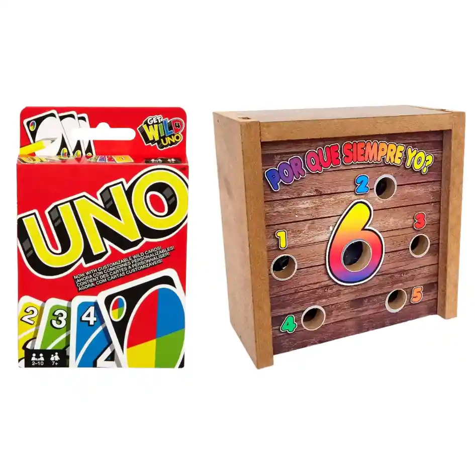 gran promoción lleva 2 espectaculares juego para disfrutar en familia, UNO + ¿por que yo? disfruta con tus amigos, hijos, padres y mas estos espectaculares juegos De 2 – 5 jugadores – Para empezar los participantes se reparten las fichas en partes iguales, luego se lanza el dado para rifar la salida, el ganador lanza el dado para dar inicio oficialmente al juego y el número que caiga en el dado será la referencia para ubicar una de sus fichas en el tablero donde se encuentra ese mismo número; y así con cada jugador. Si en ese número del tablero ya se encuentra una ficha deberá cogerla y hacerla parte de su colección. Cuando el número que sale en el dado es 6, la ficha se deposita directamente por el agujero en la caja. El jugador que primero termine sin fichas será el ganador. ¿El rey de los juegos rompe amistades? Definitivamente el Uno. Disfruta de tardes a pura risa y venganza despiadada entre amigos y amigas. Tendrás que quedarte sin cartas antes que los demás y cuando solo tengas una ¡no te olvides de decir UNO!
