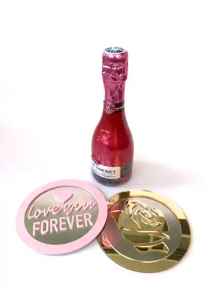 2 Portavasos en Metal y Acrílico + 1 Piba de Jp Chenet (Rosado Ice M O Stawberry Raspberry) Love You Rosado + Rosa Espejo