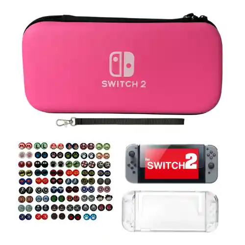 ***¡¡BIENVENIDO A ATARISTATION!!*** 1. CARACTERISTICAS DE LA COMPRA: 1.1 Esta compra incluye: - 1 Estuche De Viaje Rígido - 1 Acrilico Protector - 1 Vidrio Templado - 2 Grips (1 Par) COMPATIBLE UNICAMENTE CON SWITCH 2 1.2 Características del producto: Lleva tu consola siempre protegida con este combo protector exclusivo para Switch 2. Lleva tu consola siempre protegida con este estuche rígido su estructura resistente evita daños por golpes leves o rayones, mientras que su interior suave mantiene la consola y accesorios seguros en todo momento. El estuche incluye compartimentos organizadores para almacenar cables, cartuchos y accesorios pequeños, ofreciendo practicidad y orden al transportar tu consola. Su diseño con acabado moderno no solo brinda protección, sino también un estilo único que destaca. El vidrio templado garantiza máxima protección contra rayaduras, polvo y suciedad, conservando la nitidez de la pantalla y ofreciendo una superficie táctil sensible y precisa. Además, se incluye un acrílico protector transparente especialmente diseñado para la consola, que cubre la parte trasera y los bordes sin agregar volumen. Su estructura rígida ayuda a evitar rayones y marcas del uso diario, manteniendo el aspecto original de tu Switch 2 mientras proporciona una capa adicional de seguridad. Los 2 grips ( 1 PAR ) de silicona se adaptan perfectamente a las palancas de tu control, aportando un mejor agarre y un toque de diversión.