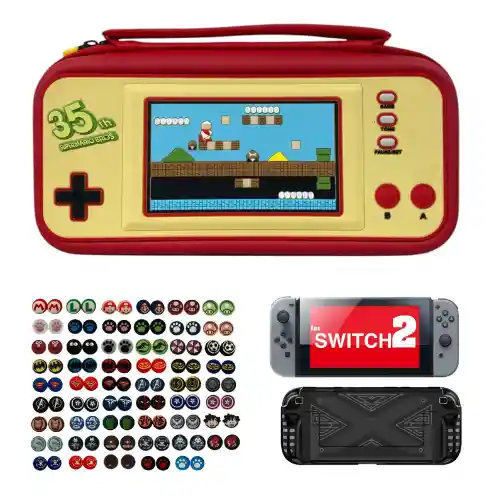 Combo Protector Negro De Diseño Mario 35 Años Compatible Con Switch 2