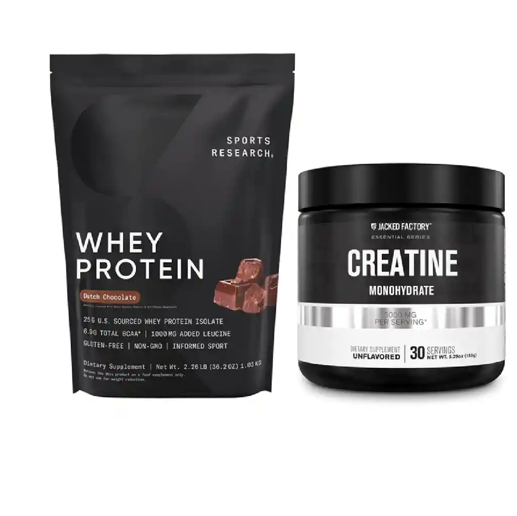 Sports Research Whey Protein Isolate (Proteína aislada de suero) Versión técnica: Descubre una fórmula de alto rendimiento: cada porción entrega ≈ 25 g de proteína de aislado de suero de leche, junto con ≈ 6.7-6.9 g de BCAA para favorecer la síntesis de proteína muscular. Garage Gym Reviews +1 La fórmula es non-GMO, libre de soya y gluten, y enriquecida con 1 000 mg de L-leucina. GMT Health +1 Con tan solo ~140-150 kcal por porción, ~2-4 g de carbohidratos y bajo contenido de azúcar (1 g), es ideal para quienes buscan mantener o aumentar masa muscular con control calórico. Fatsecret +1 Sabor “Dutch Chocolate” (o “Crema Vainilla”), excelente solubilidad, libre de rellenos innecesarios. Fácil de integrar en batidos, avena, o como suplemento after-workout. Beneficios clave: Soporte muscular de alta calidad y rápida absorción. Fórmula limpia, apta para dietas exigentes (sin gluten, sin soya). Aporta leucina + BCAA para recuperación y crecimiento. Uso sugerido: Mezclar una cucharada medida con 250-300 ml de agua o leche después del entrenamiento o como complemento proteico durante el día. Versión de venta (más conversacional): ¿Buscas un impulso potente para tu rutina de entrenamiento? Esta proteína aislada de suero es exactamente lo que necesitas. Cada servicio te da 25 g de proteína ultra limpia, libre de gluten y soya, con un delicioso sabor a chocolate holandés. Ideal para recuperarte mejor, construir músculo y mantener una nutrición óptima sin complicaciones. Mezcla, bebe y sigue con tu día — fácil, rápido, efectivo. 2) Jacked Factory Creatina Monohidratada (Monohidrato de creatina) Versión técnica: Un suplemento de creatina monohidratada de alta pureza: ≈ 5 g (5 000 mg) por porción, sin sabores, sin rellenos, formulado para mejorar fuerza, potencia y rendimiento anaeróbico. Garage Gym Reviews +1 Se mezcla fácilmente en cualquier bebida, puede combinarse con tu pre-entreno o proteína. Fabricado en instalaciones «cGMP» en EE.UU. y reconocido como una de las formas más investigadas de creatina. BarBend +1 Beneficios clave: Aumenta intensidad del entrenamiento, potencia explosiva y recuperación. Fórmula limpia: un solo ingrediente activo (creatina monohidratada) sin sabores añadidos. Uso sugerido: Tomar 1 cucharada (~5 g) al día con agua o jugo, preferiblemente antes o después de entrenar. Según protocolos, se puede usar fase de carga (según indicaciones) y luego mantenimiento.