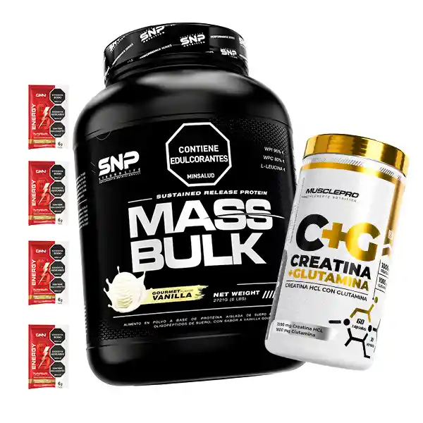 Combo Proteína Mass Bulk De 6 Libras + Creatina Con Glutamina Y 4 Energy Up