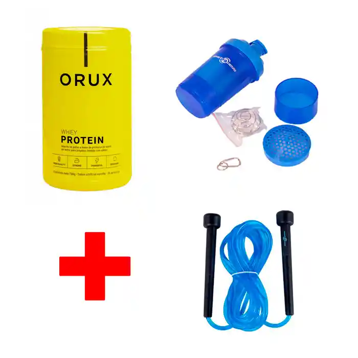 //PROTEINA:Excelente proteína que cuenta con todos los ingredientes necesarios para maximizar el crecimiento muscular, la fuerza y la recuperación. Puedes tomarla como un Snack saludable o complemento nutricional.//CARAMAÑOLA: //Material: plástico ABS//Cierre a presión.//Capacidad: 0.4 Litro//Incluye compartimientos (pastillero, batidos)//Libre de BPA.////LAZO: Medida: 5mm x 2.8mt. Cuerda para saltar con mangos en plástico y cable en caucho