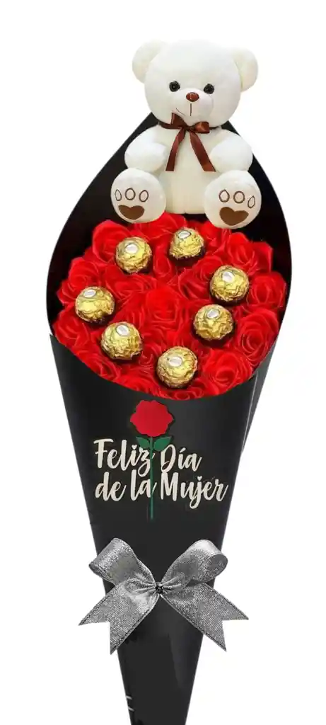 RAMO ROSAS X 20 FERRERO CHOCOLATE X 7 MAS OSO DE PELUCHE BLANCO O CAFE SEGUN EXISTENCIA