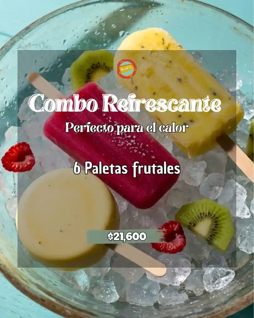 6 paletas frutales hechas con sabores frescos y naturales como mango, mora, maracumango y más. Ligero, refrescante y perfecto para cualquier momento.
