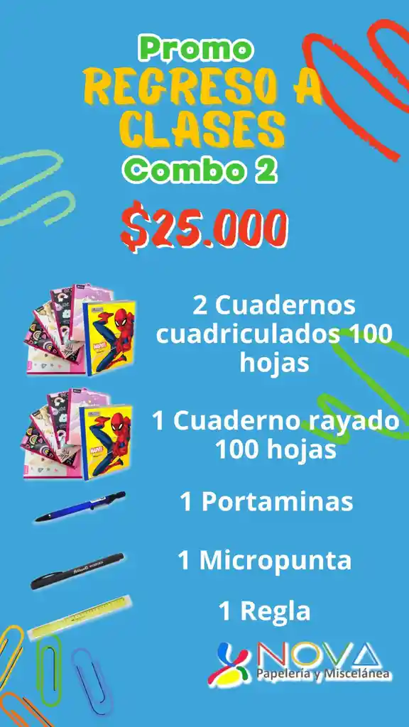 Incluye: 2 Cuadernos cosidos 100 hojas cuadriculados + 1 cuaderno cosido 100 hojas rayado + 1 portaminas + 1 Micropunta + 1 Regla)