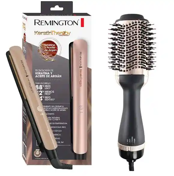 Combo Remington Plancha Keratina 1.1 + Cepillo Secador: Peinado Profesional en Casa Obtén un acabado de salón desde la comodidad de tu hogar con el Combo Remington Plancha Keratina 1.1 + Cepillo Secador. Este set está diseñado para ofrecerte herramientas eficaces y de alta calidad que cuidan tu cabello mientras lo estilizan, dejándote un look perfecto en minutos. Plancha de Keratina Remington: Tecnología de Keratina y Aceite de Argán: Esta plancha infunde tu cabello con keratina y aceite de argán, proporcionando una melena suave, brillante y saludable, además de nutrir cada hebra. Placas de Cerámica con Turmalina: La cerámica de alta calidad con turmalina distribuye el calor de manera uniforme, evitando puntos calientes y protegiendo tu cabello del daño por calor excesivo. Calentamiento Rápido en 30 Segundos: No pierdas tiempo esperando. La plancha alcanza la temperatura ideal en tan solo 30 segundos, lo que te permite empezar a peinar rápidamente. Temperatura Ajustable: Personaliza la temperatura entre 140°C y 230°C según las necesidades de tu tipo de cabello. Ideal tanto para cabellos finos como gruesos. Apagado Automático: Para mayor seguridad, la plancha se apaga automáticamente después de 60 minutos de inactividad. Cable Giratorio de 3 Metros: Ofrece mayor flexibilidad y comodidad durante el uso, sin preocuparte por los enredos o la limitación de movimiento. Cepillo Secador Remington: Tecnología Iónica: La tecnología iónica reduce el frizz y mejora la suavidad, dejando tu cabello manejable, brillante y sin electricidad estática. Cerdas Mixtas: Las cerdas diseñadas para desenredar suavemente el cabello mientras lo peinas, asegurando que tu melena quede perfectamente estilizada sin tirones ni daño. Tres Configuraciones de Calor y Velocidad: Ofrece distintas configuraciones de temperatura y velocidad para adaptarse a tus necesidades. Ya sea para un secado rápido o un peinado más controlado, elige la opción que más te convenga. Función de Aire Frío: Fija tu peinado con un toque de aire frío, ayudando a prolongar la duración de tu look y asegurando que tu peinado se mantenga perfecto durante todo el día. Cable Giratorio de 2 Metros: Proporciona facilidad de manejo y evita los enredos, para que puedas usarlo con total comodidad. Ventajas del Combo Remington Plancha Keratina + Cepillo Secador: Peinado Rápido y Eficaz: Con estas herramientas, lograrás un acabado profesional en minutos, ahorrando tiempo y esfuerzo en tu rutina diaria de cuidado capilar. Cuidado y Protección para Tu Cabello: La combinación de tecnología iónica y keratina asegura que tu cabello no solo quede estilizado, sino también nutrido y protegido del daño. Diseño Ergonómico: Ambas herramientas están diseñadas para ser cómodas y fáciles de usar, con cables giratorios y configuraciones personalizables para adaptarse a tu estilo de vida. Resultados Duraderos: No importa el tipo de cabello que tengas, este combo te permite obtener un peinado duradero y de aspecto profesional que resiste todo el día. Este combo de Plancha de Keratina y Cepillo Secador Remington es perfecto para quienes buscan calidad, versatilidad y tecnología avanzada para el cuidado de su cabello. Dale a tu melena el tratamiento que se merece y disfruta de un peinado impecable en la comodidad de tu hogar.