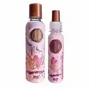 Combo de perfume capilar y mantequilla corporal con feromonas. Hidratación y sensualidad en un ritual. Perfume termoprotector desenredante: Aroma suave y juvenil para tu cabello. Protección térmica (HASTA 180°). Protección UVA (radiación ultravioleta) y UVB (luz solar). Desenredante, con excelente peinabilidad tanto en cabello húmedo como seco. Control del frizz. Protección ambiental. Protección contra sal y cloro. Aumento de la resistencia capilar. Engrosamiento y fortalecimiento del cabello Promueve la reparación de daños internos existentes. Revierte los efectos del envejecimiento del cabello Repara macro y micro daños causados por el estrés físico, químico y ambiental. Protección contra la contaminación por ozono y humo de cigarrillos, y preservación de aminoácidos. Sistema antioxidante bio protector contra el estilo de vida urbano. Protección anticontaminación y antiestrés antioxidante para cabellos expuestos a agresiones externas. Aporta brillo y suavidad. Mantequilla perfumada corporal: Enriquecido con feromonas y un aroma cautivador que perdura, dejando un rastro de sensualidad a tu paso, mientras suavizas e iluminas tu piel. Su fórmula exclusiva, con manteca de karité orgánica, hidrata profundamente sin dejar sensación grasa. Mejora visiblemente la apariencia de la piel. Retarda los signos del envejecimiento. pH balanceado, rico en vitaminas y antioxidantes. Proporciona un efecto glow gracias a sus finas partículas de brillo. Nutre intensamente la piel de tu cuerpo. Disfruta de una piel suave y radiante. Poder emoliente: nutre, suaviza y protege, rellenando las grietas de la piel seca y mejorando su flexibilidad. Es una gran amiga para las pieles sensibles y secas. Poder hidratante: penetra fácilmente en la dermis, creando una barrera protectora. Reduce la pérdida de agua de la piel.