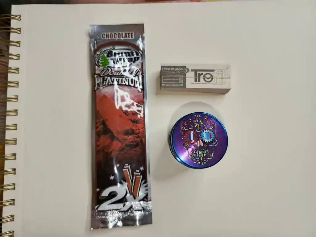 Rolling papers premium, saborizados, king size. Paquete de 100 filtros. Trilladora metálica, tapa magnética estampada.