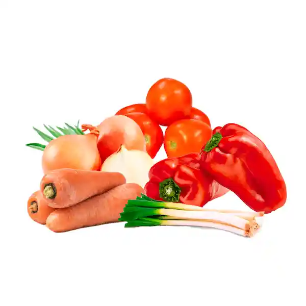 Producto Peso Total (g) Pimentón Rojo 400 Cebolla Larga 500 Zanahoria Grande 1400 Tomate Chonto Grande 1000 Cebolla Cabezona Blanca Grande Sin Pelar 500
