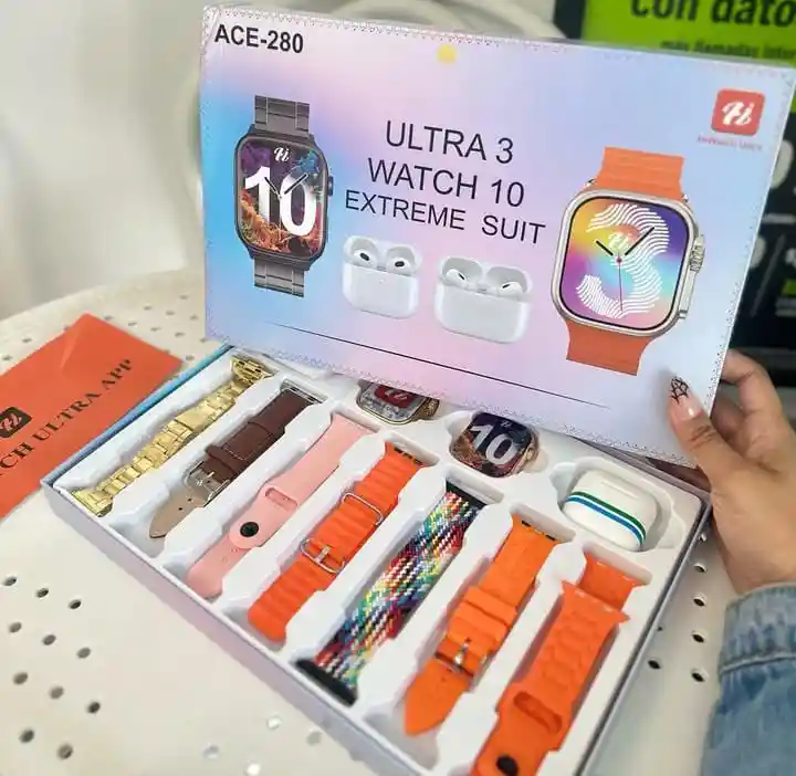 reloj inteligenteSMART WACH ULTRA 3 WATCH 10 EXTREME SUIT conjunto de auriculares Bluetooth ultra3+watch10+watch4, reloj de gran círculo + auriculares Bluetooth de 5.ª generación + 3 cargadores + 3 manuales, conjunto económico, todo con la aplicación Hiwatch Ultra.