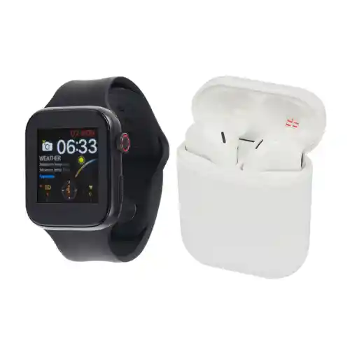 Set completo que incluye Smartwatch I7 Pro Max L y audífonos inalámbricos TWS Bluetooth. El reloj cuenta con pantalla TFT de 1.75”, batería de 200mAh y carga magnética. Permite recibir notificaciones y mensajes, además de monitorear frecuencia cardíaca, presión arterial y oxígeno en sangre. Incluye 8 modos deportivos, 2 juegos de manillas intercambiables, y es compatible con Android y iOS. Los audífonos Bluetooth TWS ofrecen conexión inalámbrica para música y llamadas. El smartwatch es ideal para hacer deporte, monitorear tu actividad diaria y mantenerte conectado.