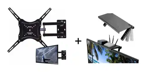 America Store te trae Combo Soporte Base Pared Tv Lcd Led Base 14 Hasta 55 '' 50kg + Soporte Ajustable Plegable Pantalla Para Tv Pc CARACTERÍSTICA SOPORTE TV: SOPORTE DE MURO PARA TELEVISORES LCD, PLASMAS Y LED DE 14” A 55”, SOPORTA HASTA 50 KG. HECHO DE ACERO QUE OFRECE FUERZA Y DURABILIDAD, DE COLOR NEGRO. IDEAL PARA COLOCAR TU TELEVISOR DE UNA FORMA DISTINTA Y ASÍ AHORRAR ESPACIO EN TU HOGAR. CARACTERÍSTICA SOPORTE PANTALLA: Fabricado con materiales respetuosos con el medio ambiente para reducir la contaminación Espacio de almacenamiento Extra para organizar tus cosas. Compatible con tu TV o Monitor de pantalla plana. Organiza todos tus suministros de oficina, dispositivos multimedia, altavoces, mandos a distancia, marcos de fotos y más.