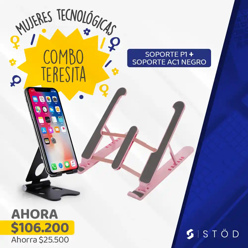 Combo Soporte laptop y Soporte celular Rosado Negro