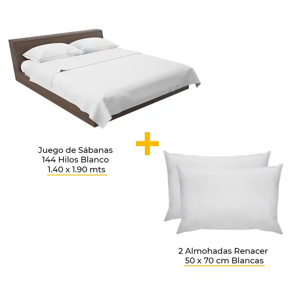Juego de Sábanas Blanco Cama 1.40×1.90 144 Hilos (Con fundas) + 2 Almohadas Renacer 50×70