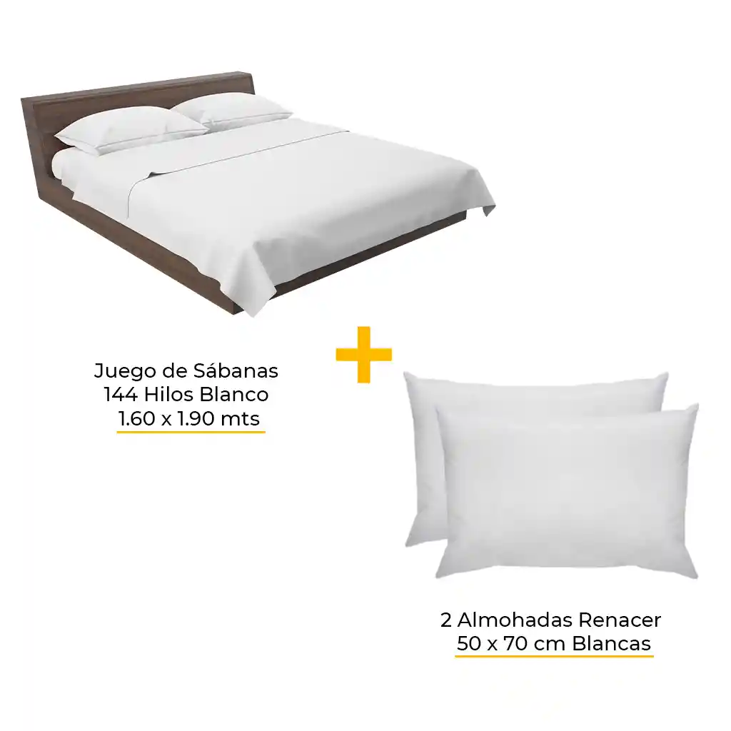 Juego de Sábanas Blanco Cama 1.60×1.90 144 Hilos (Con fundas) + 2 Almohadas Renacer 50×70
