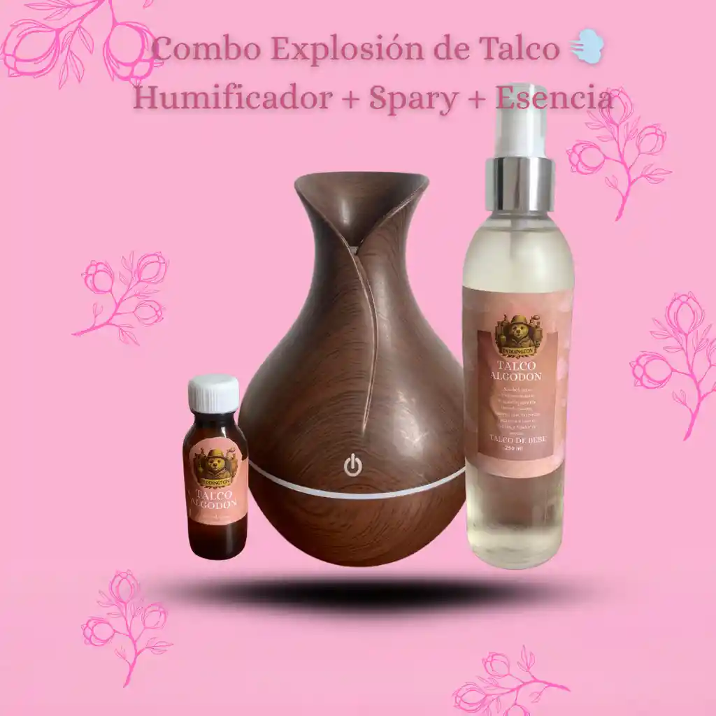 Combo de talco💨 Humificador + Sray + Esencia Spray : rozealo por la cama, cortinas y todo tipo de tela. Humificador + esencia : llena el Humificador de agua y pon 4 gotas de esencia, vas a tener un aroma impresionante